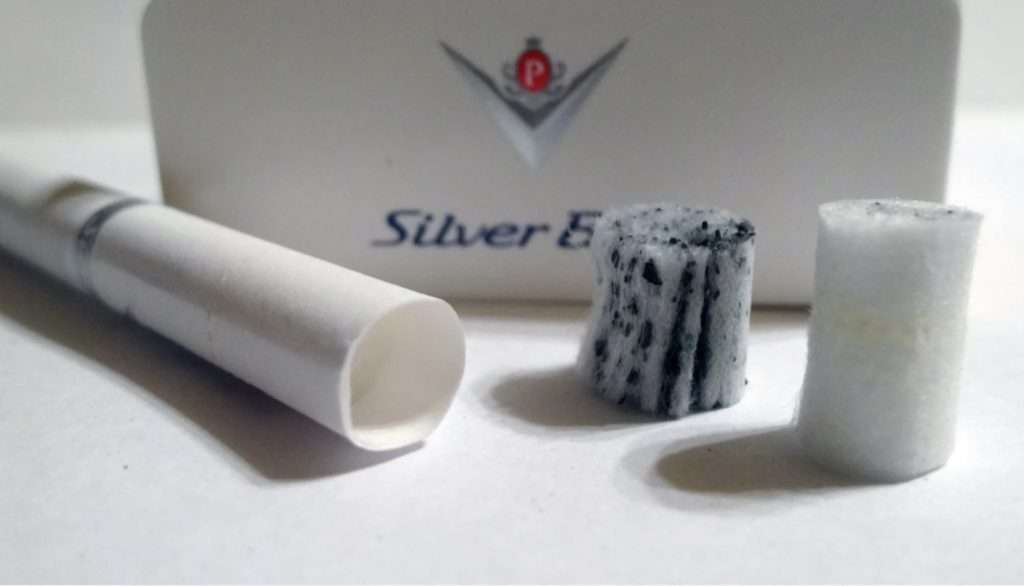 The filter consists of two “kegs” made of acetate fiber. The first is of medium density and very rich in carbon crumb saturation, and the second is made of pure acetate fiber, but it is much denser. The structure is crowned with a mouthpiece made of thick cardboard. The filter paper carries one perforation line.