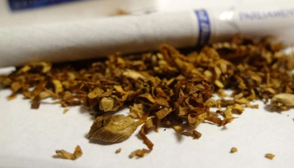The pack of cigarettes is predominantly dark yellow, with small bits of brown and light-yellow fractions. The slices consist of short and narrow strips and small flakes of leaf. However, there are also vein slices and surrogate leaf in the composition of the cut, but there is very little surrogate here. Characteristics of the cigarettes: tar 8 mg., Nicotine 0.5 mg., CO 9 mg.