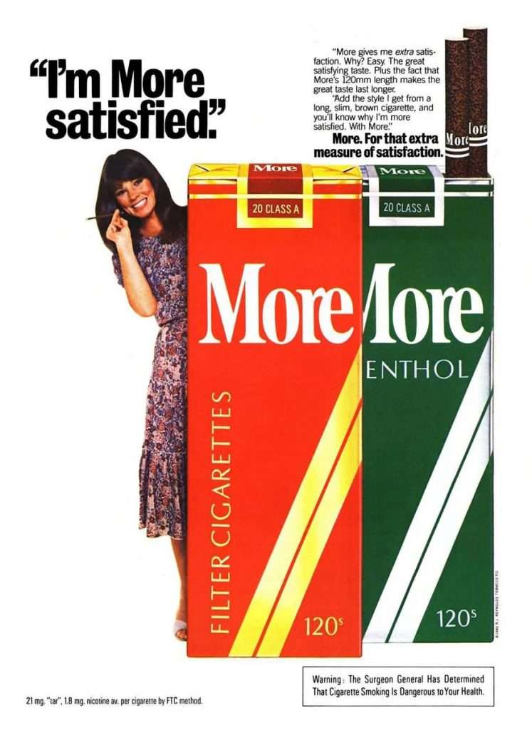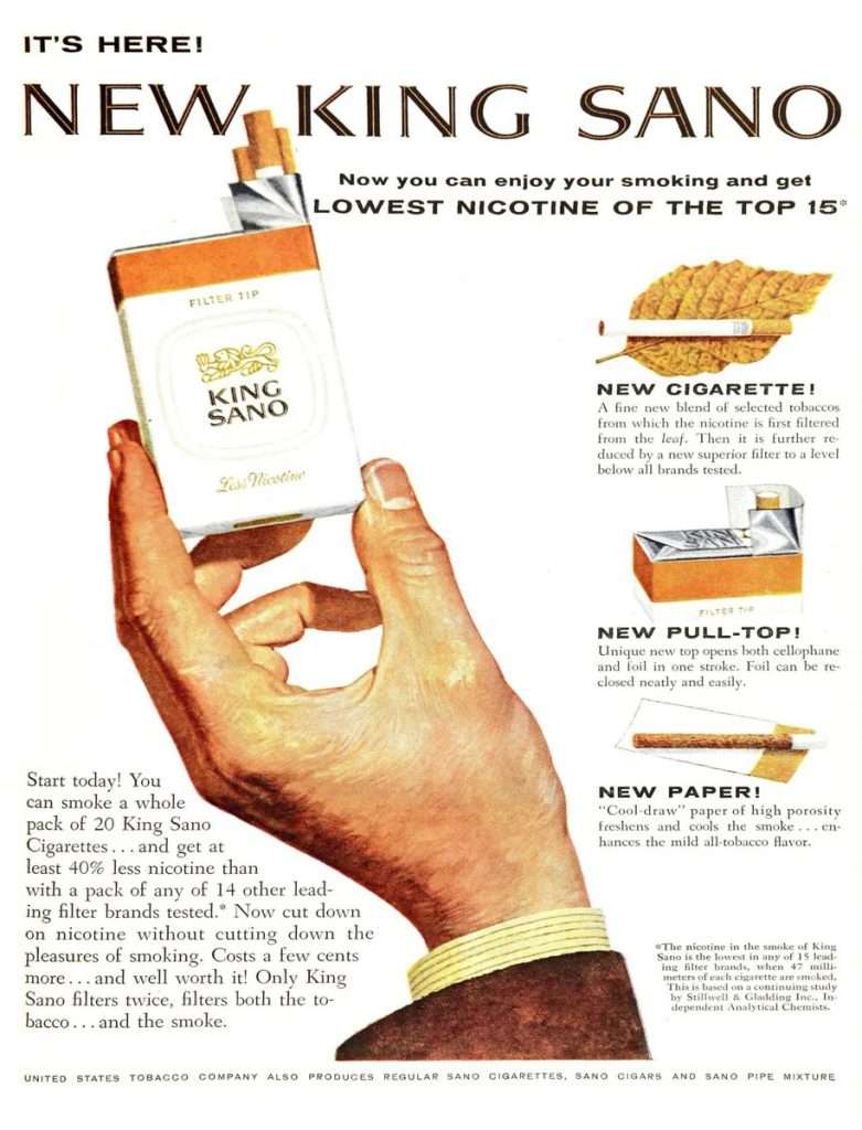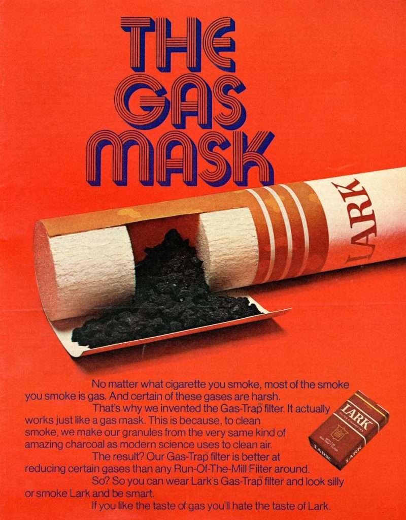 And the most popular topic of promotion, which remains to this day, was, of course, cigarette filters. Although is there much to think of there? Acetate fiber… Well, maybe in combination with charcoal chips. What else? But really, the topic of cigarette smoke filtration is very broad and interesting, deserving a separate topic. Besides, it has already been started in the post “History of Cigarette Filter” and will be continued in the very near future.