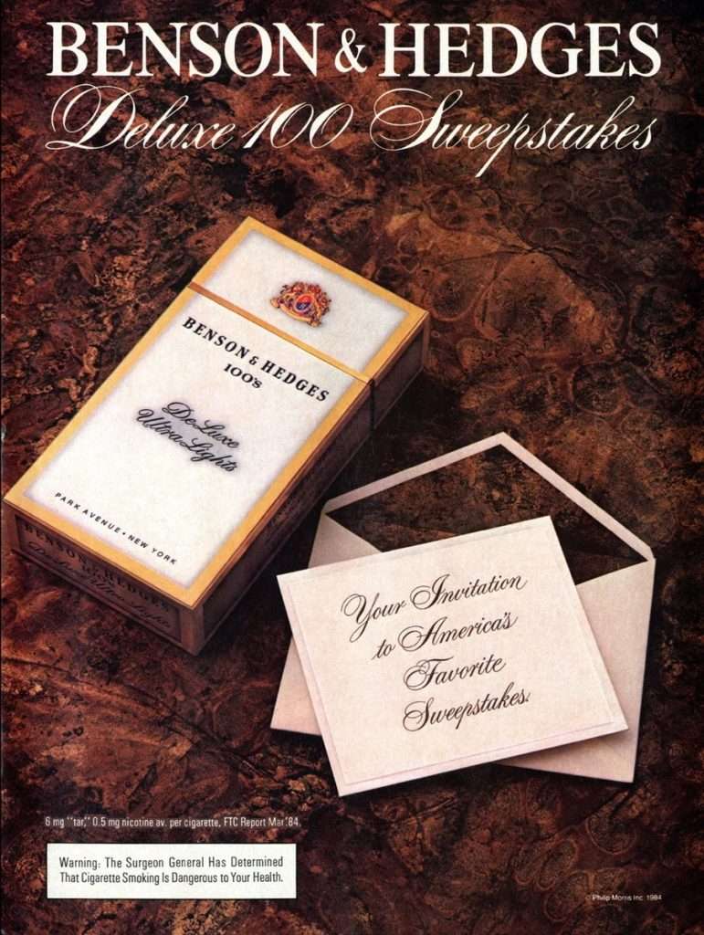 Although Benson & Hedges products have been on the Canadian market since 1906, the official branch did not open until 1967. It was this brand that brought the 100mm cigarette to the Canadian market. In the late 1970s, Lights 100’s (Regular and Menthol) appeared, and in 1986, the King Size.